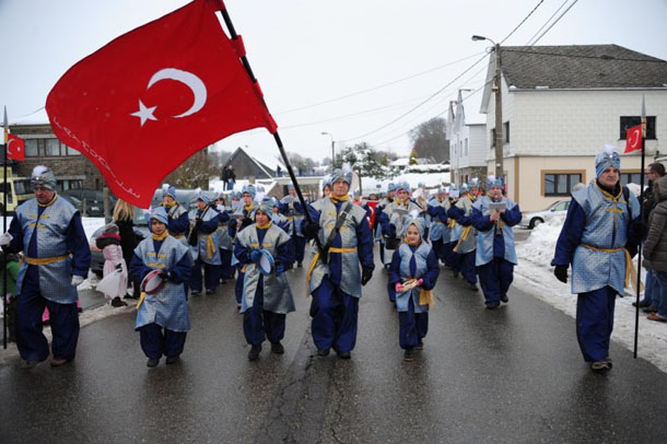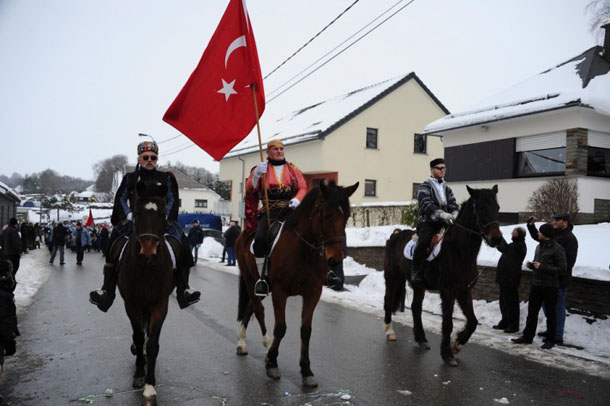 Belçika 'nın "Türksüz Türk köyü" Faymonville'de düzenlenen geleneksel karnaval karlı havaya rağmen coşkulu geçti. Karnavalda Türk bayraklı süvarilerin öncülüğünde, mehter marşı çalarak yürüyen Faymonville köylüleri büyük alkış alırken, her yıl farklı ülkeleri temsil eden komşu köyler ilginç kıyafetleri ve danslarıyla dikkati çekti.