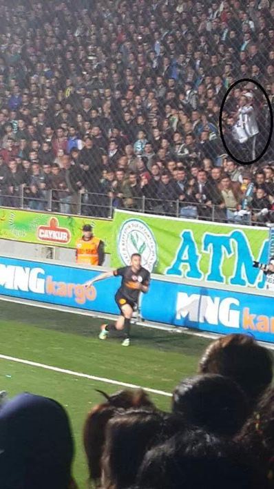 Çaykur Rizespor-Galatasaray maçında Burak Yılmaz'a çakmak fırlatan taraftarın görüntüleri ortaya çıktı.