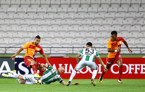 23. dakikada Musa Araz'ın sağ kanattan yaptığı ortada, kaleci Muslera topu tokatladı. Pozisyonu takip eden Fofana'nın vuruşunda, top auta gitti.