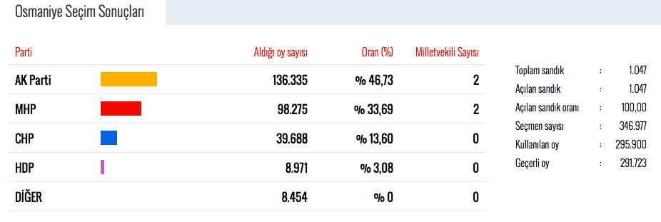 Bahçeli’nin oy kullandığı Anıttepe Ortaokulu’ndaki 1310 numaralı sandıktan CHP çıktı. Bahçeli, memleketi Osmaniye’de bile birinciliği AK Parti’ye kaptırdı.