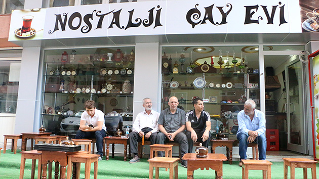 54 yaşındaki Celalettin Avcıoğlu’nun antika eşyalarla donattığı çay evi görenlerin dikkatini çekiyor. Buraya gelen müşteriler, nostalji tarzda dizayn edilmiş çay evini ve antika eşyalarla süslenmiş vitrini görünce adeta geçmişe gidiyor. Farklı türlerde yüzlerce antika eşyanın yer alması da çay evinde adeta bir müze havası oluşmasını sağlıyor.