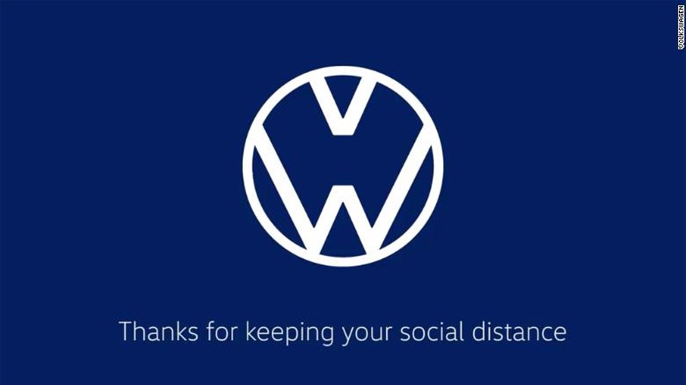 Logosunu ayıran Volkswagen değişen logosunun altına "Sosyal mesafeye özen gösterdiğiniz için teşekkürler" notunu düştü.
