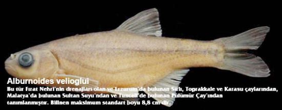 Yeni keşfedilen bir diğer tür olan Alburnoides Velioglui ise Fırat Nehri'nin drenajları olan ve Erzurum'da bulunan Sırlı, Toprakkale ve Karasu çaylarından, Malatya'da bulunan Sultan Suyu'ndan ve Tunceli'deki Pülümür Çayı'ndan tanımlanmıştır. Bilinen maksimum standart boyu 8,8 santimetredir. Alburnoides Velioglui radyografik çekimlerde desteğini esirgemeyen Rize Devlet Hastanesi Yöneticisi Opr. Dr. Hasan Basri Velioğlu'na atfedilmiştir.