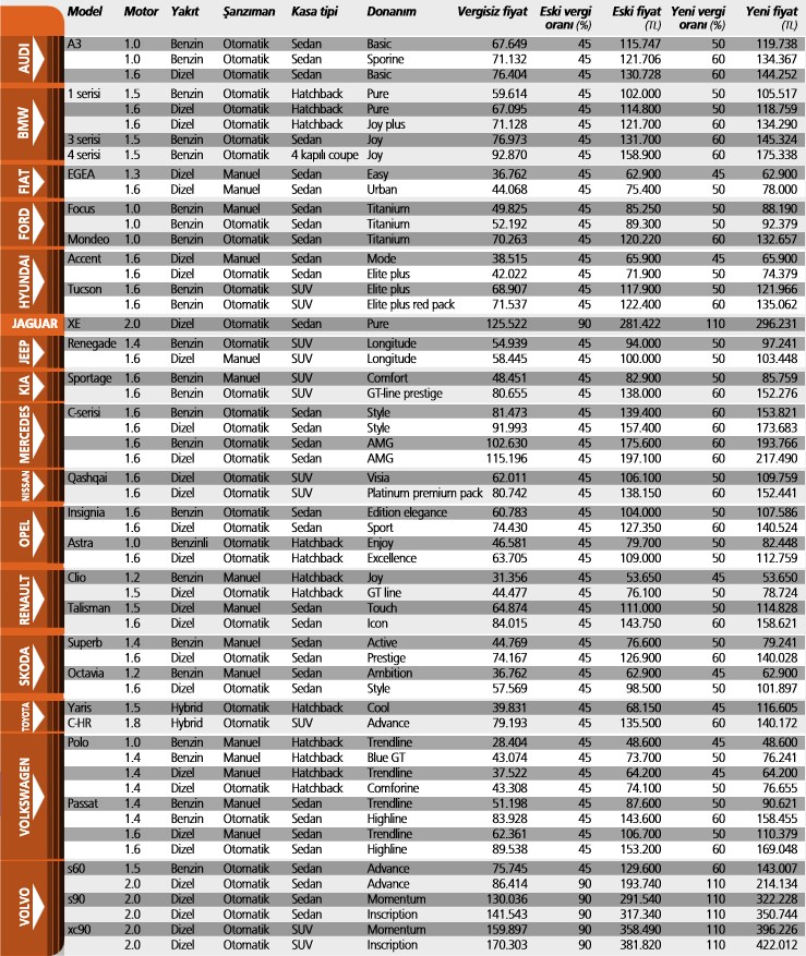 Değişen ÖTV oranları çok az sayıda modelde fiyatlara yansımadı. Vergilendirmeye motor hacimleriyle birlikte fiyat kategorileri de dahil olunca ÖTV dilimleri fiyat artışlarıyla birlikte değişebilir hale geldi.